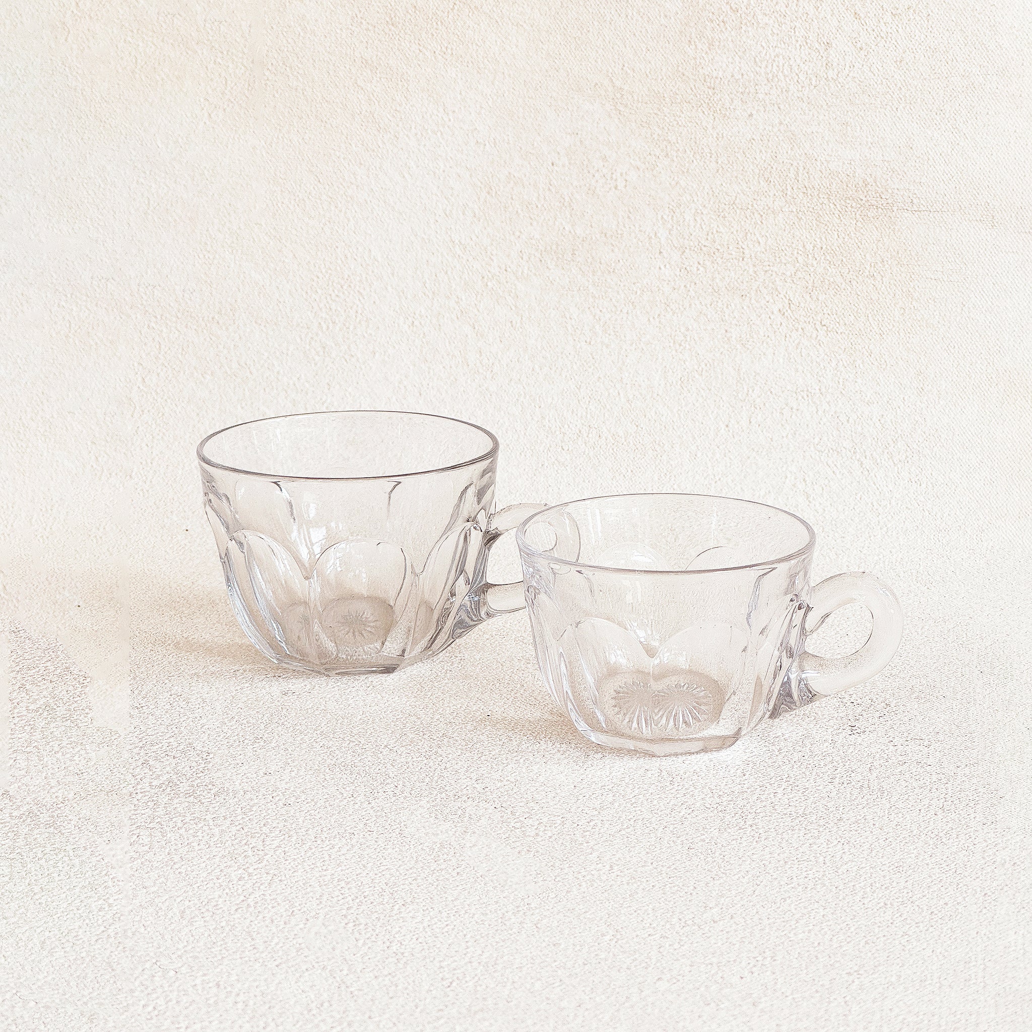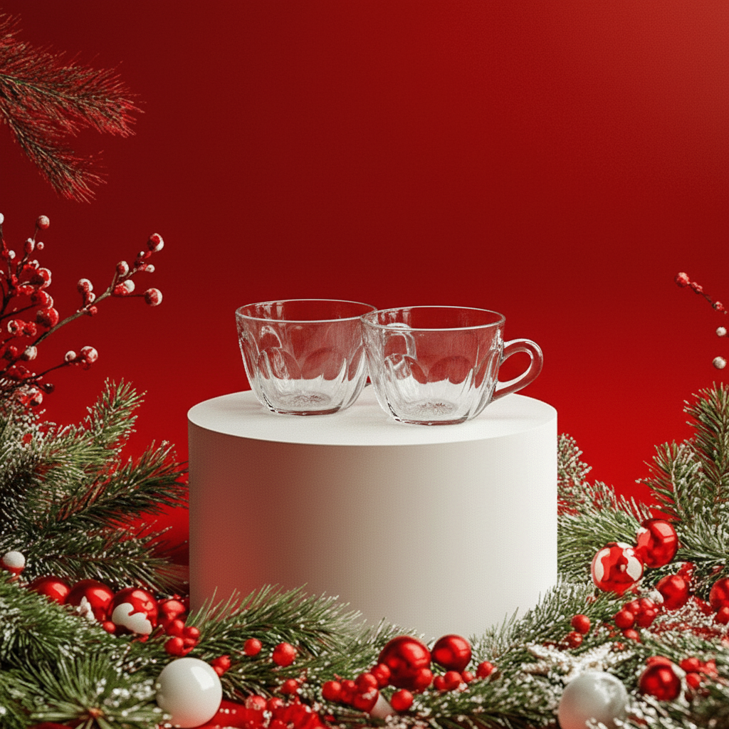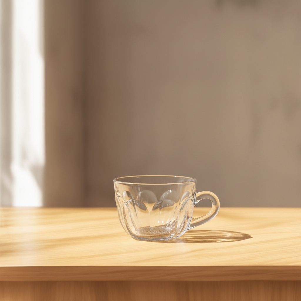 Place the left glass cup on top of the table